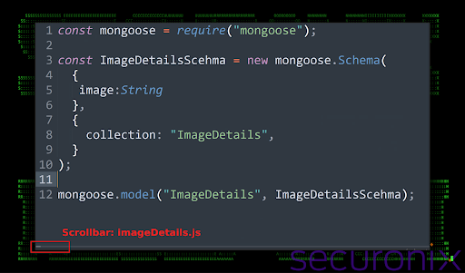 Buried in the Backend directory was a single JavaScript file which on the surface appears to be part of legit node.js project using Mongoose, which is a Node.js package that provides MongoDB object modeling in an asynchronous environment.