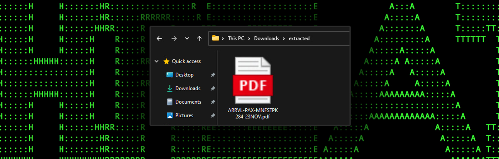 Figure 4: document lure (ARRVL-PAX-MNFSTPK284-23NOV.pdf.msc) as it would appear to the user