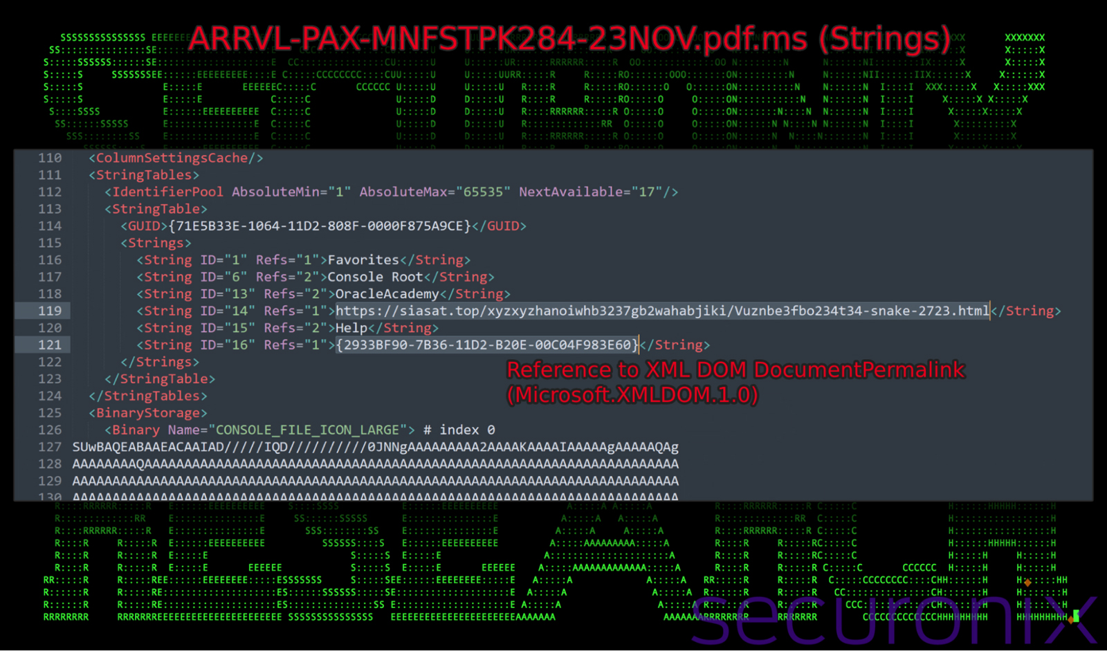 Figure 3: XML contents of ARRVL-PAX-MNFSTPK284-23NOV.pdf.msc phishing lure