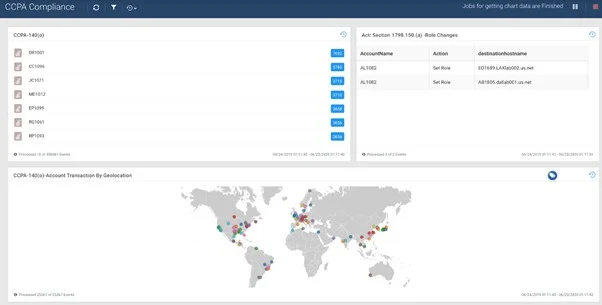 Along with the support for compliance and privacy provided within the platform, Securonix provides CCPA-specific dashboards and reporting to track CCPA compliance.