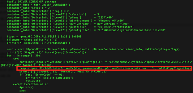 Figure 1: Example of Common PrintNightmare Exploit Variant Code