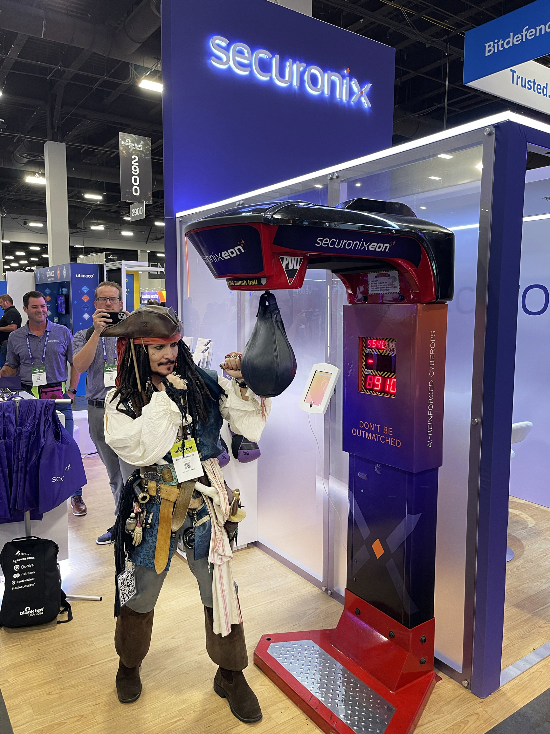 Our punching bag game was so successful at RSA 2024, that it made a comeback for Black Hat. Steady crowds lined up throughout the show to take a swing and see if they could make the leaderboard. Our very own Chief Executive Officer, Kash Shaikh, jumped in on the fun and even the infamous pirate Jack Sparrow made an appearance.