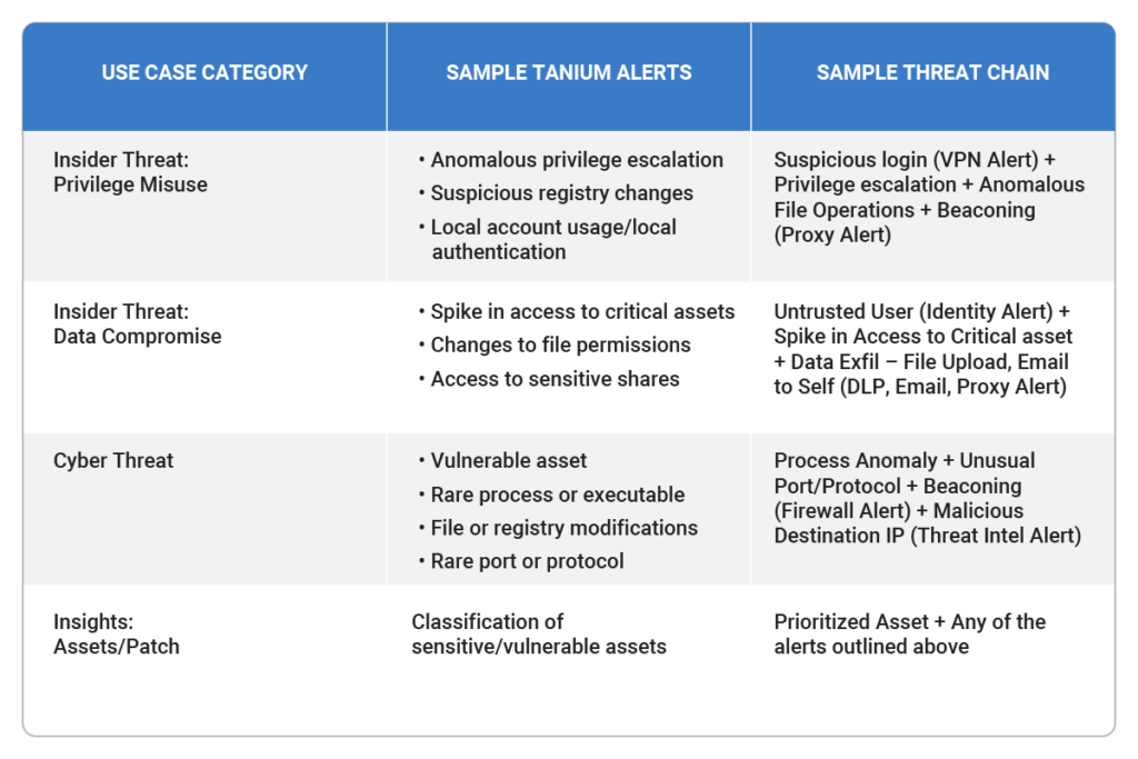 Table 1: Use Case Mapping to Threats from Tanium and Securonix
