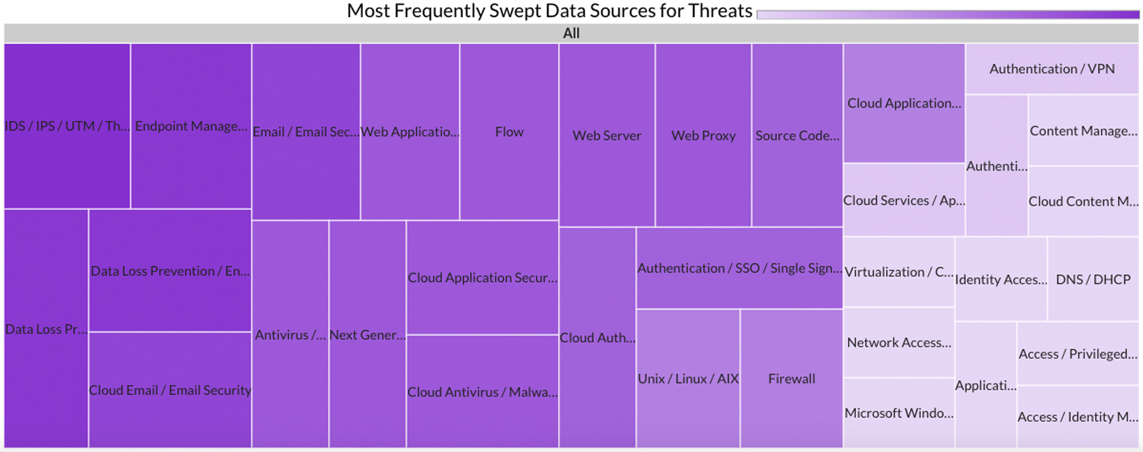 Last month Securonix Autonomous Threat Sweeper identified and analyzed 6,063 TTPs and IoCs, 177 emerging threats, investigated 65 potential threats, and elevated 16 threat incidents. The top data sources swept against include IDS / IPS / UTM / Threat Detection, Data Loss Prevention, Endpoint Management Systems, and Email / Email Security.
