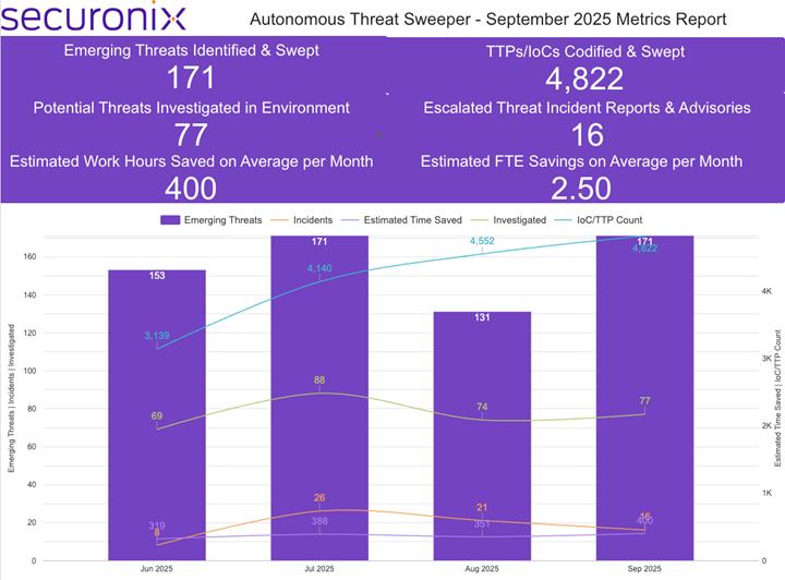 The Monthly Intelligence Insights provides a summary of top threats curated, monitored, and analyzed by Securonix Threat Labs in September 2025. The report additionally provides a synopsis of the threats; indicators of compromise (IoCs); tactics, techniques, and procedures (TTPs); and related tags. Each threat has a comprehensive summary from Threat Labs and search queries from the Threat Research team. For additional information on Threat Labs and related search queries used via Autonomous Threat Sweeper to detect the below-mentioned threats, refer to our Threat Labs home page.
