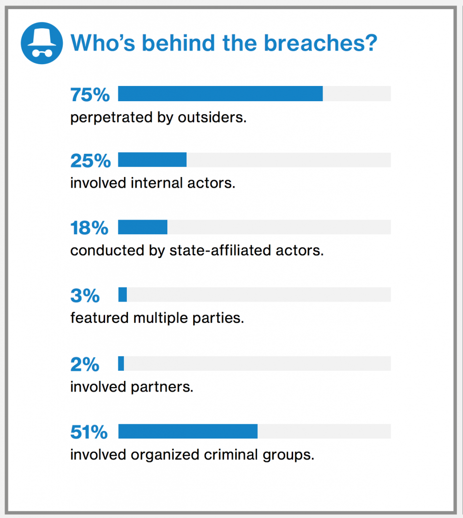 Security environments have historically focused on keeping external actors out, however, according to the 2017 Verizon Data Breach Investigations Report, one out of every four identified breaches involved an internal actor.