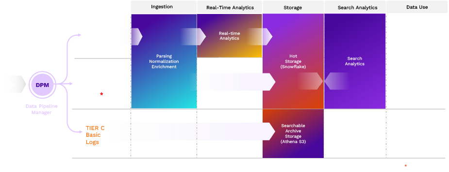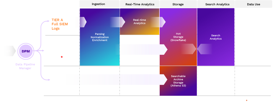 By routing telemetry to different storage tiers based on business value, organizations reduce SIEM ingestion costs while preserving full data fidelity.